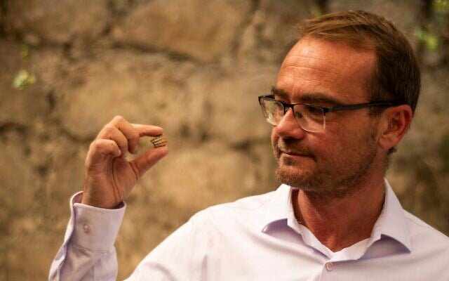 Доктор Питер Зильберг из Университета Бар-Илан хранит фрагмент керамики возрастом 2700 лет с первой ассирийской надписью, найденной в Иерусалиме. Об открытии было объявлено 22 октября 2025 года. (Йоли Шварц/Управление древностей Израиля)