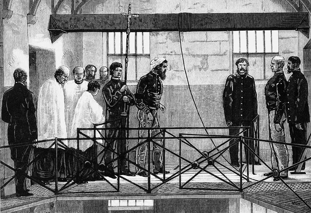 Неда Келли ведут на эшафот в Мельбурнскую тюрьму в ноябре 1880 года. |